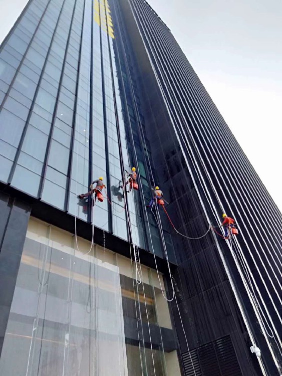 在具体案例方面,成晖重点介绍了上海浦东江边雅高集团旗下诺福特酒店的清洗项目:“这是雅高集团旗下非常地标性的欧式风格酒店,我们帮他们清洗了最高253米高的飞碟状顶层旋转餐厅。这个餐厅造型独特,算是黄浦江上的明珠,但建成之后几乎就没有再做清洗,因为难度太高、危险度太高,人工也很难操作。我们完成清洗作业后,客户非常满意,整个餐厅焕然一新,就餐的客人也能看到非常透亮的黄浦江江景。” 据悉,该项目作业面积近2000平方米,耗时约三天完成,采用重力引水方案应对高层水压不足问题,彻底解决了酒店长期存在的维护难点,且对酒店运营实现“零干扰”。